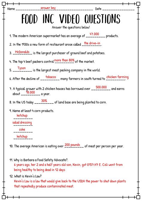 Read Answer Key To Food Inc Packet Doc Internet Archive